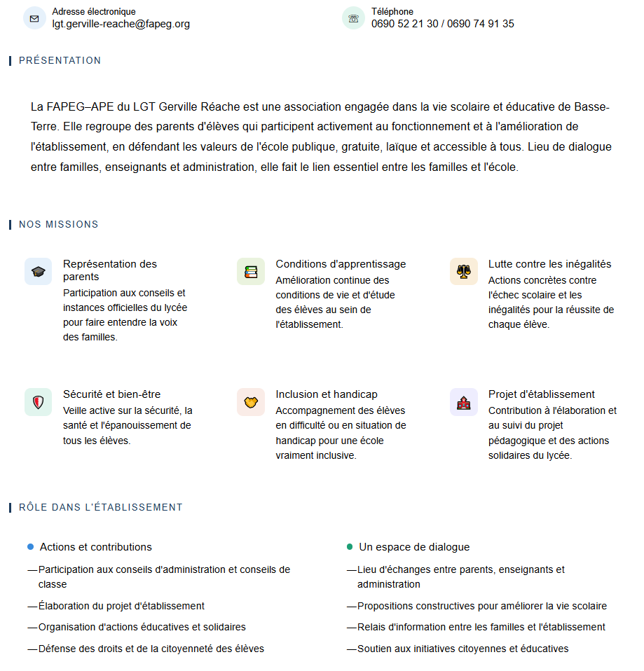 Vous pouvez contacter par mail la présidente Madame NOEL Eléonor : eldoc971@yahoo.fr