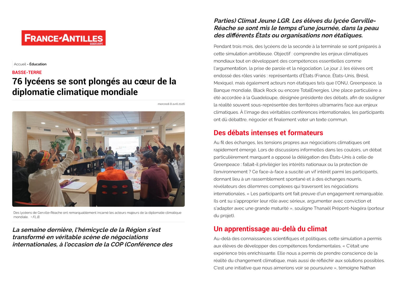 Le mercredi 29 octobre 2025, a eu lieu l’inauguration de l’espace Racines vivantes à Basse-Terre, un lieu de détente ouvert au public qui a été conçu avec l’aide des élèves éco-délégués du lycée et un groupe d’étudiants de l’IUT de Saint-Claude, dans le cadre de la Politique de la ville avec le soutien de la DEETS, DAC Guadeloupe, CAGSC, PNG, Région, Département et Mairie de Basse-Terre