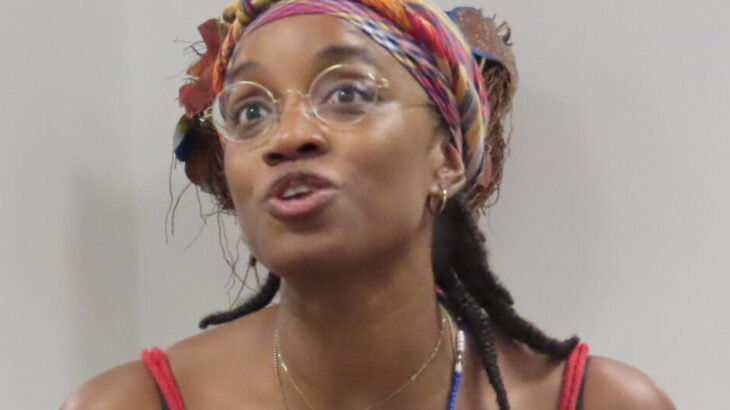 D’abord Rita Carelli, grande gagnante du concours pour son livre Terre noire, déjà récompensé du Prix São Paulo de littérature pour un premier roman en 2021, relatant l’histoire de la jeune Ana et de son parcours en tant que jeune étudiante devant naviguer à travers le deuil et la situation terrible à laquelle ses origines l’ont soumise. Puis ensuite Katia Dansoko Touré pour son roman La solitude des notes bleues pour lequel un jury du public, en partenariat avec l’aéroport, a choisi de distinguer le prix Guadeloupe Maryse Condé après plusieurs heures de débat enflammé. Très touchée, c’est avec beaucoup de modestie qu’elle est montée sur scène pour recevoir la plaque, qu’elle dédie à Maryse Condé elle même qui lui a donné l’envie d’écrire et l’a poussée à continuer personnellement avant son décès. Après avoir remercié le public, les gagnantes se sont éclipsées pour laisser place à la troupe Barefoot dont la performance devait terminer la soirée en beauté. J’avais déjà eu l’occasion d’assister à deux de leurs représentations plus tôt dans l’année, celles de Moi Tituba, Sorcière mais rien ne m’avait préparée à l’expérience que je m’apprêtais à vivre ce soir là.