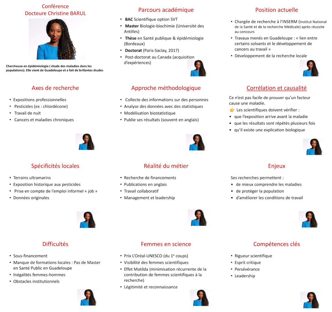 Dans le cadre du mois » Des droits de la femme », la chercheuse en épidémiologie a relaté son parcours, ses recherches et donné un bel exemple de réussite en Guadeloupe. Ses travaux visent entre autres, d’un point de vue juridique, à mettre en évidence la causalité entre le « chlordécone » et le cancer de la prostate.